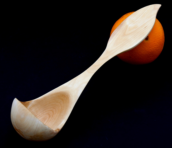 A strange shaped branch gave me the chance to carve a ladle, the wood is birch. Carved with axe and knives.